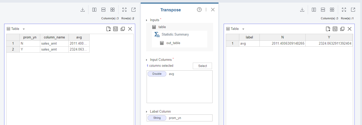 행렬바꾸는 함수입니다. 옆으로 펼치고 싶은 컬럼을 input에 넣습니다. 컬럼으로 올릴 값은 label에 넣습니다.