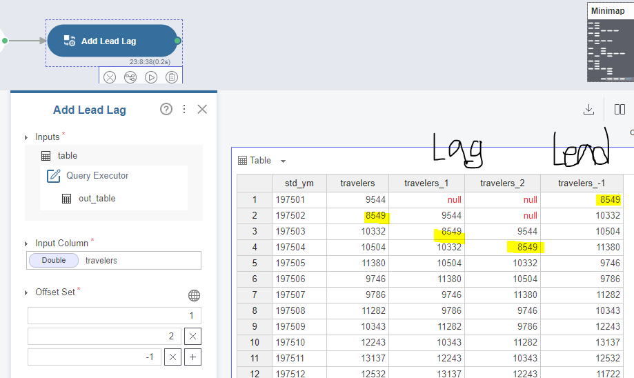 밀어올려진 데이터는 그냥 사라집니다. 예를 들어 lead 에서 9544 는 그냥 없어집니다. Lead의 맨 밑의 행에서 해당 부분은 null이 되었을 것입니다.