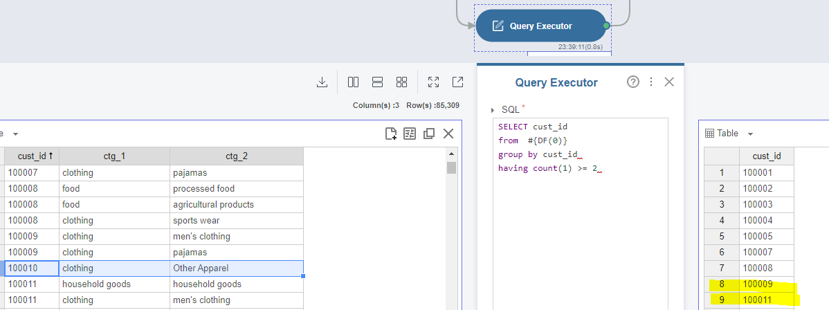 연관분석의 전제는 2건 이상 구매했을 때 분석이 가능하기 때문에, 아래 캡쳐 속의 100010 번 고객의 경우 처럼 1개만 구매한 고객은 분석 대상 데이터셋에서 제외시켜주는 전처리가 필요합니다.