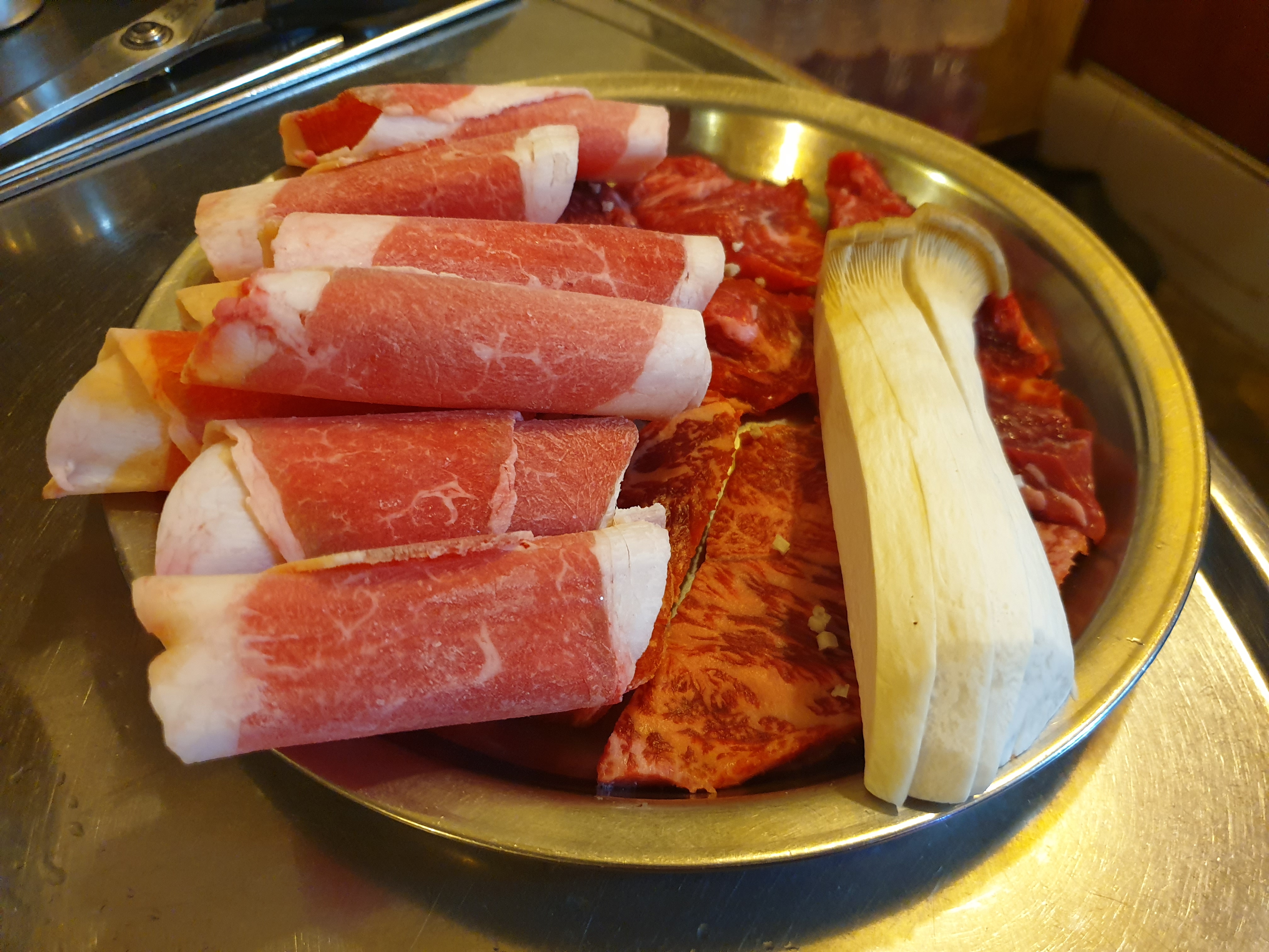쨔쟌!!! 왼쪽에 있는 고기가 한우 차돌박이입니다.