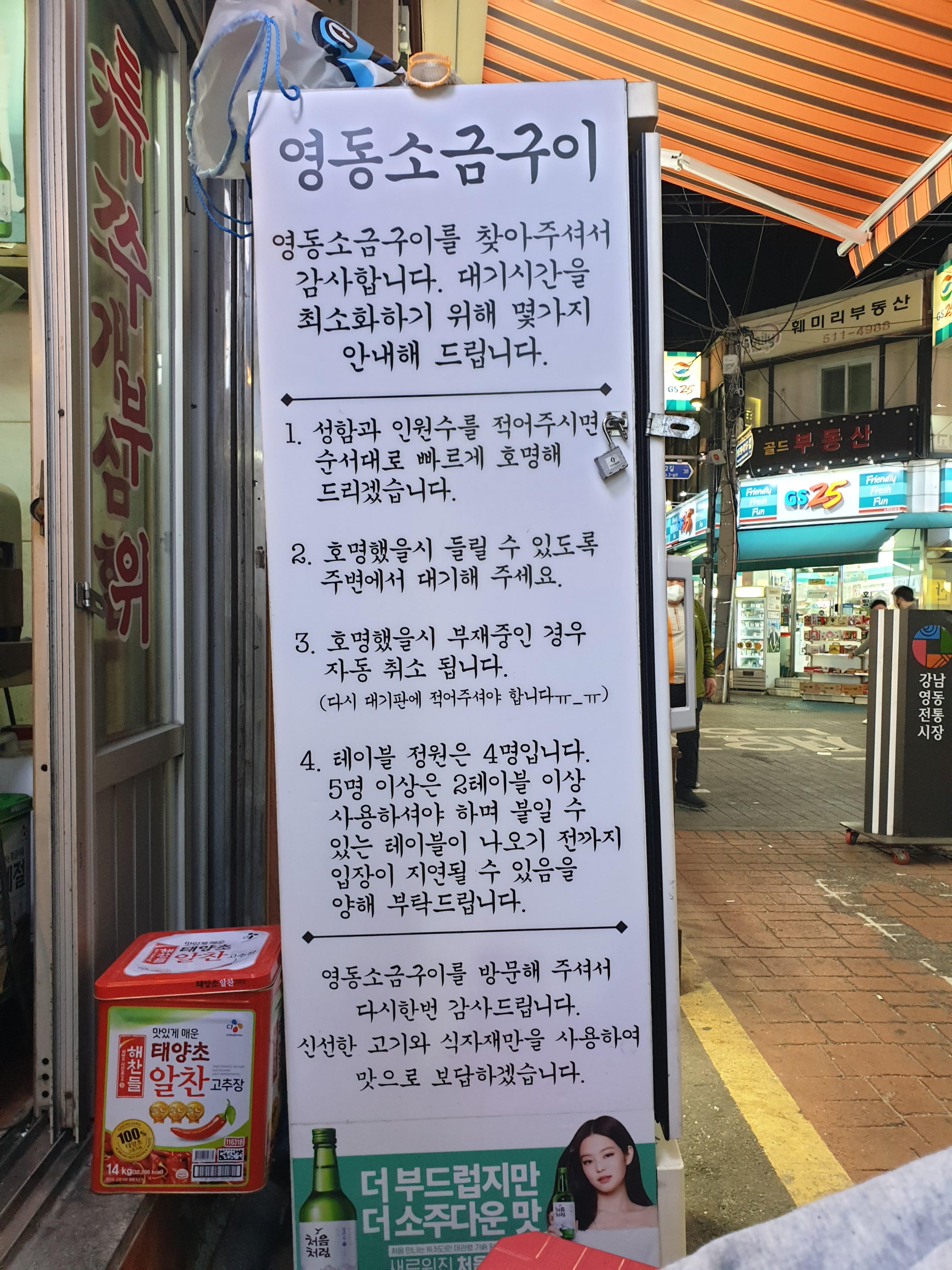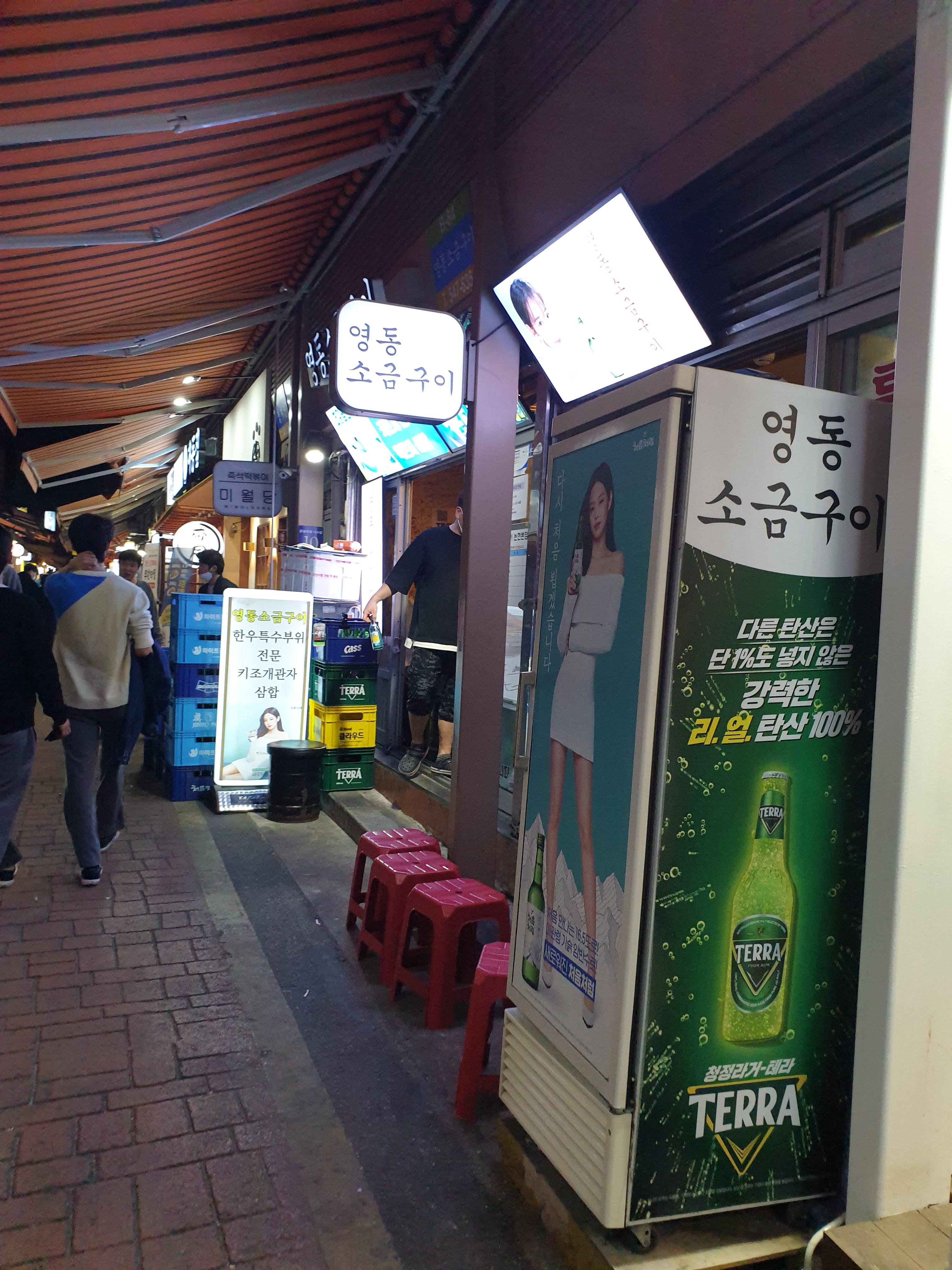 시장 초입에서 멀지 않은 곳에 영동소금구이 집이 보입니다!