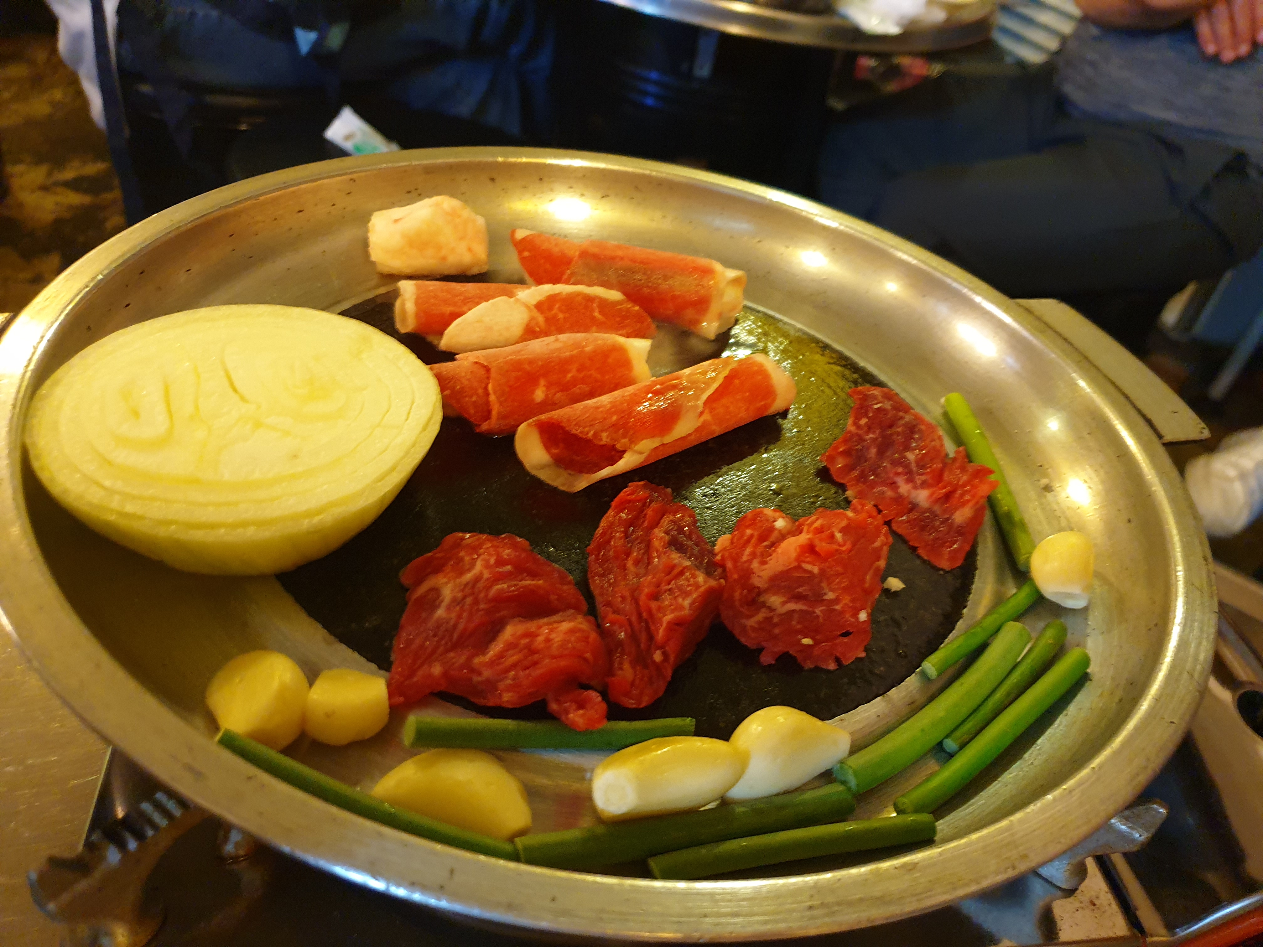 우지로 판을 살살 닦아서 기름을 묻혀준 후에 소고기를 올려봅니다!