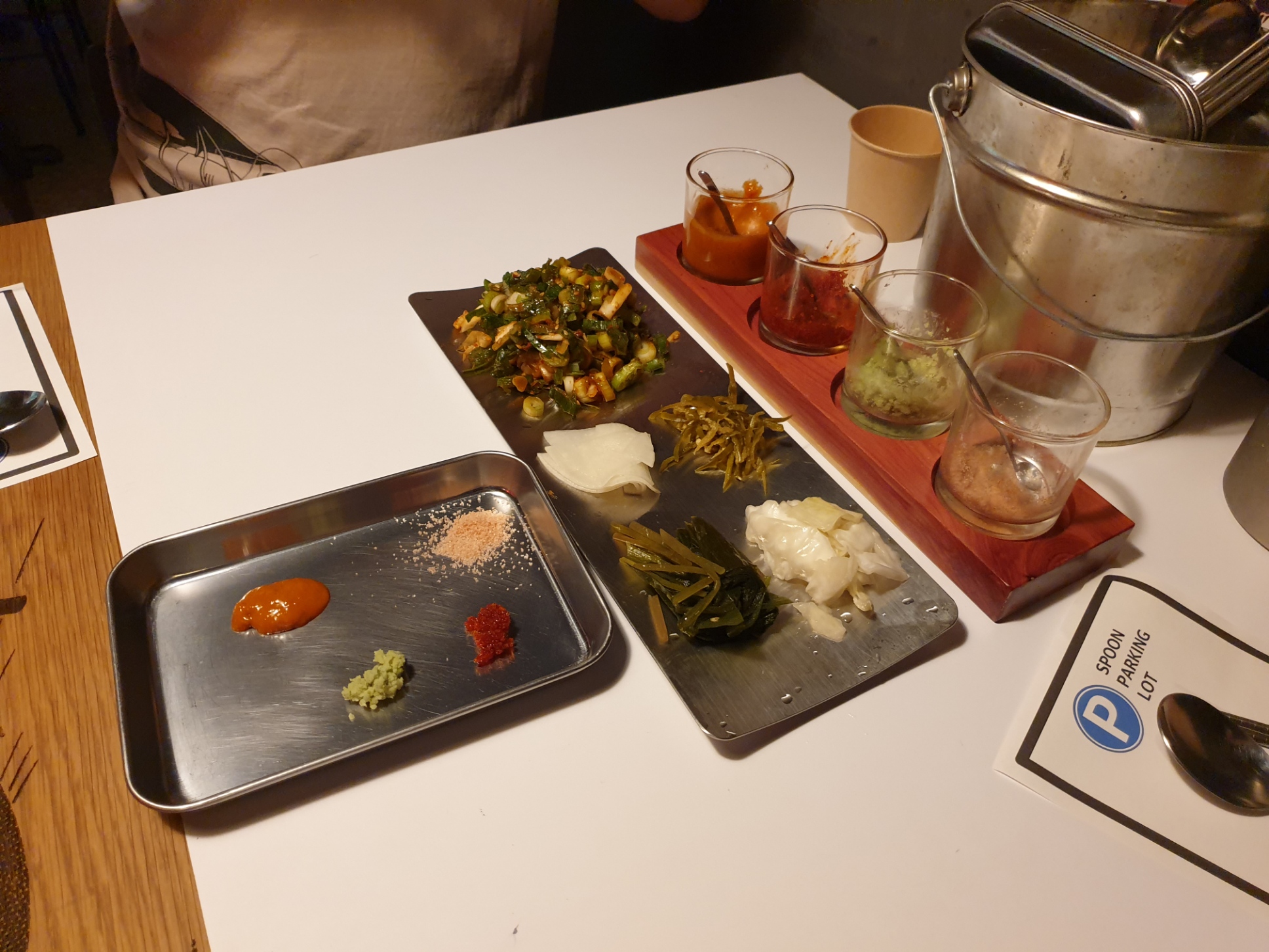 소금, 쌈장, 와사비, 그리고 뭔가 매워보이는 소스까지 있어서