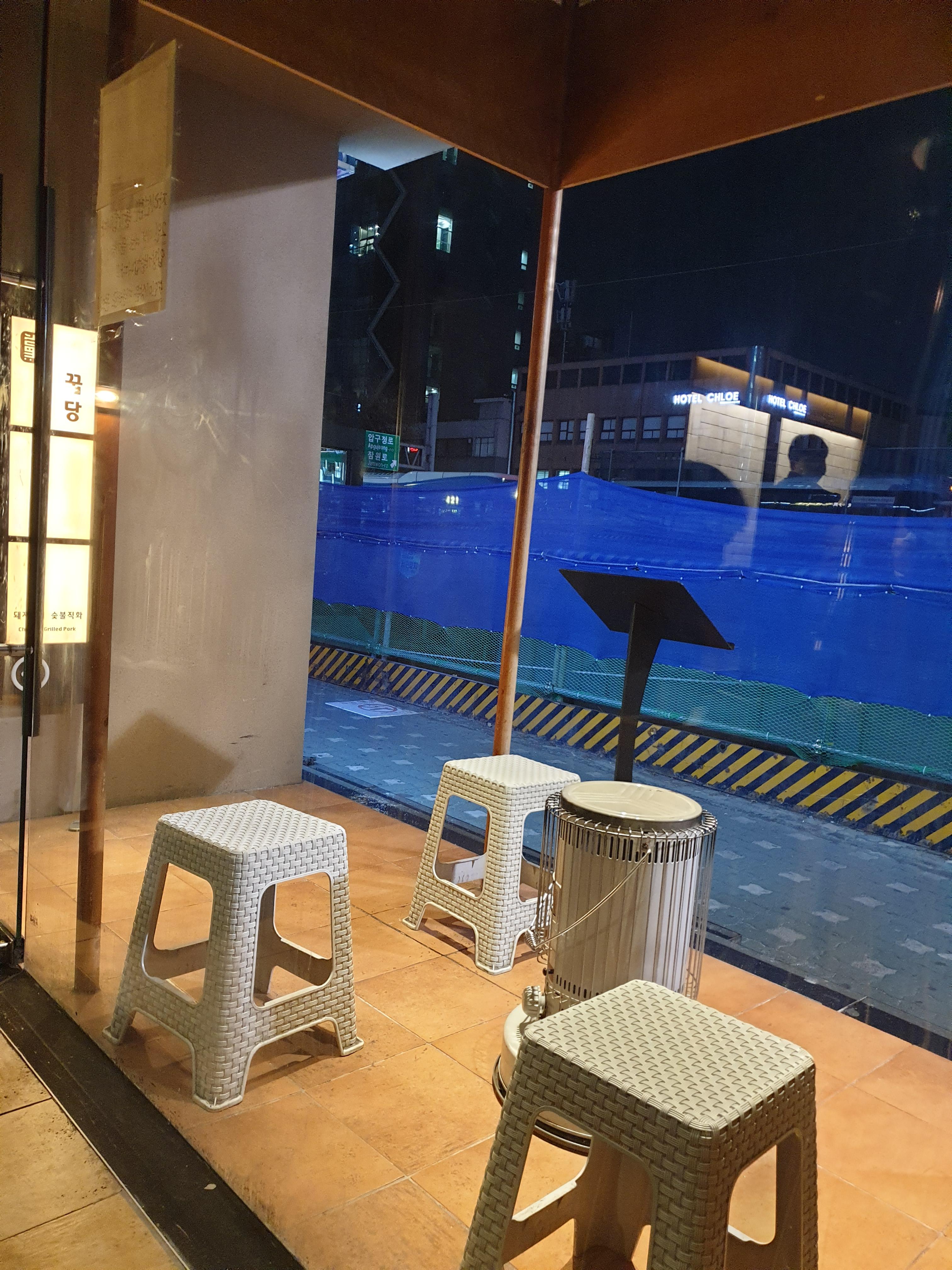지금은 비어있는데 가게 앞에 웨이팅 하는 공간입니다. 저는 날씨가 추웠던 때에 다녀온거라서 몸을 녹일 수 있는 난로가 설치되어 있었어요. 운 좋게 사람들이 없어서 사진도 한 컷 찍어왔답니다 :)