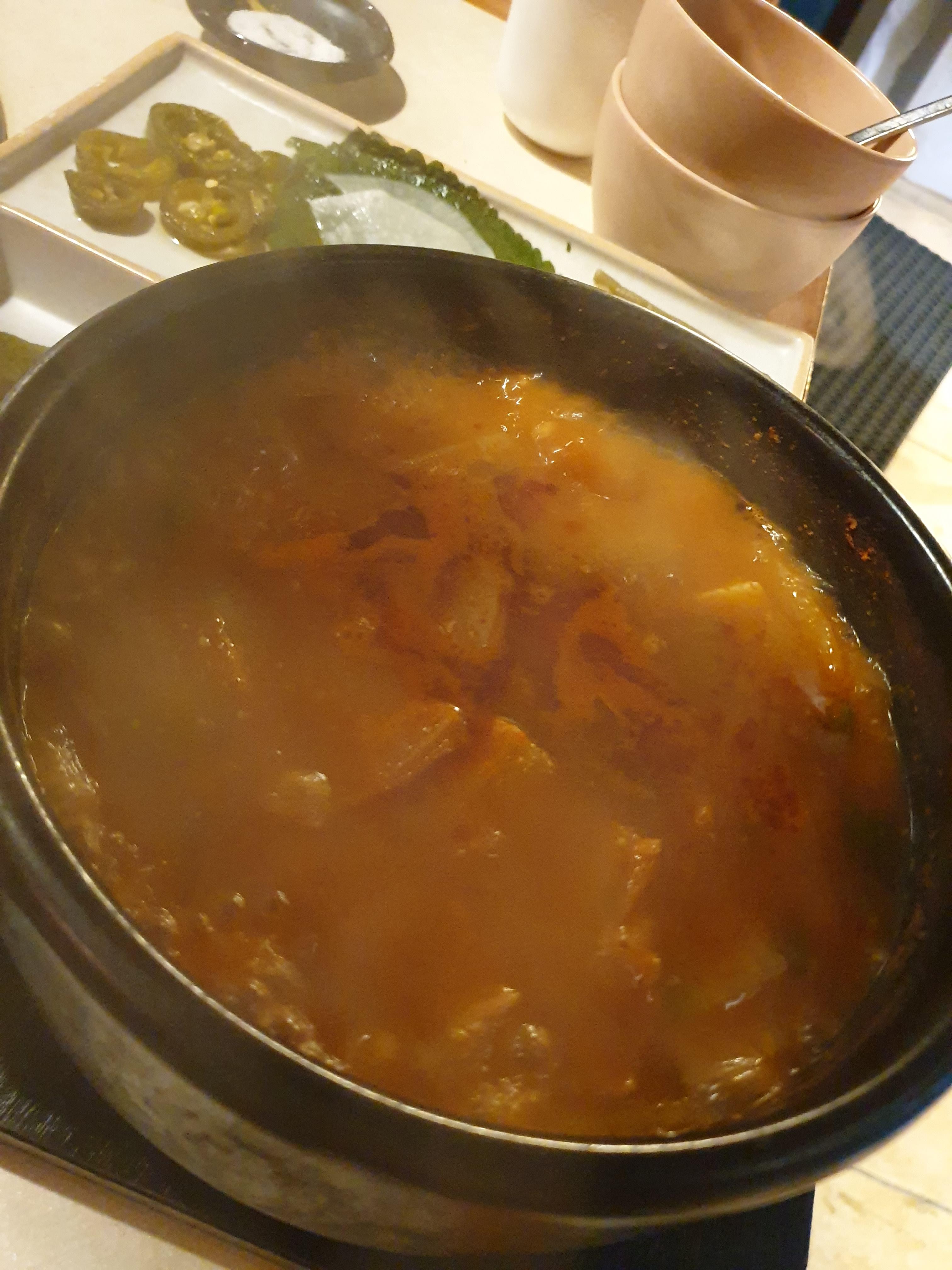 Lastly, I ate bean paste stew. My stomach was so full... It was so much.