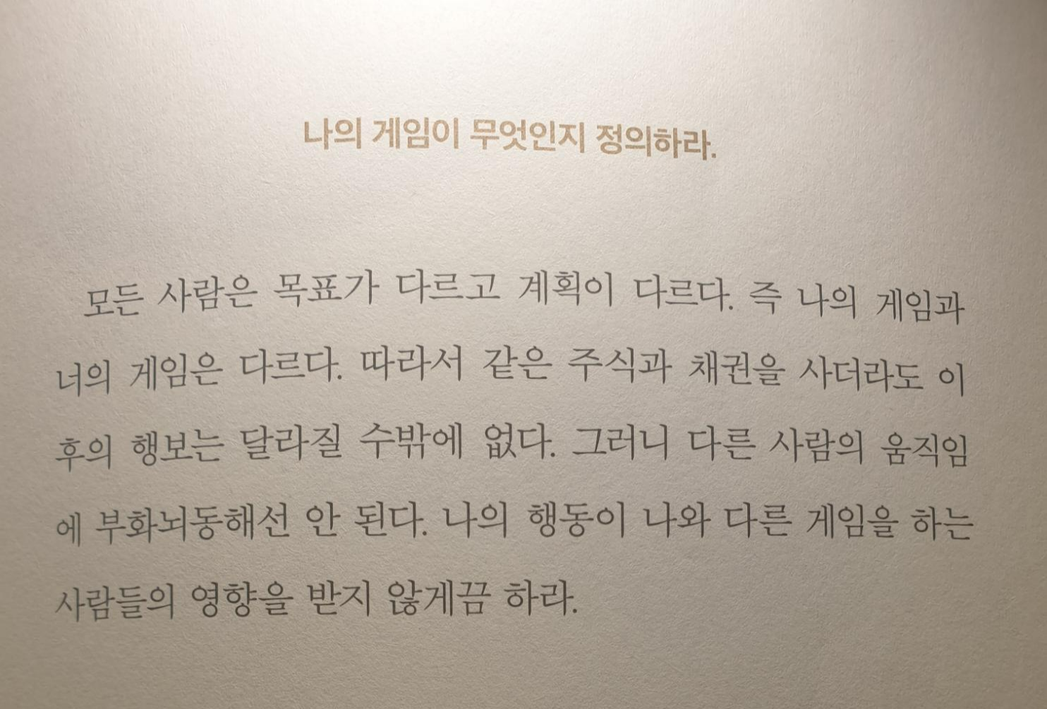 돈과 관련해 가장 중요한 점은 내가 시간을 어떻게 보고 있는지를 이해하고, 나와 다른 게임을 하는 사람들의 행동에 설득당하지 않는 것이다. 당신이 지금 어떤 게임을 하고 있는지 파악하는 데 비상한 노력을 기울여라.
