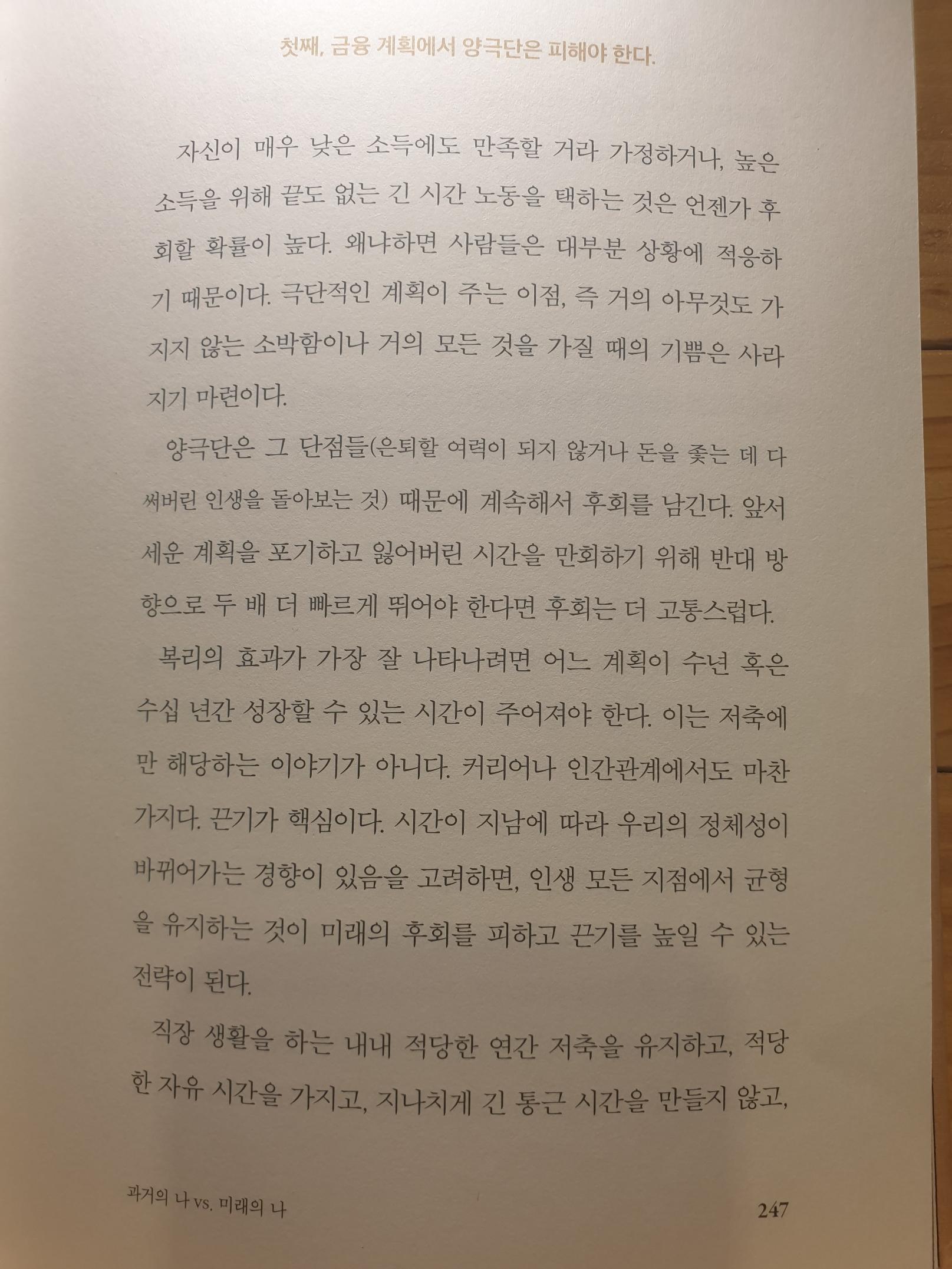 저자는 '은행에 있는 현금은 인생을 좌우하는 중요한 선택을 우리 스스로 할 수 있게 만든다.'고 말한다. 이 문장을 보고 진짜 공감을 많이 했다. 나 자신만 보더라도, 쌓이게 될 현금을 인식하고서야 대학원에 갈까 하는 생각을 고민이라도 해볼 수 있게 되었기 때문이다.