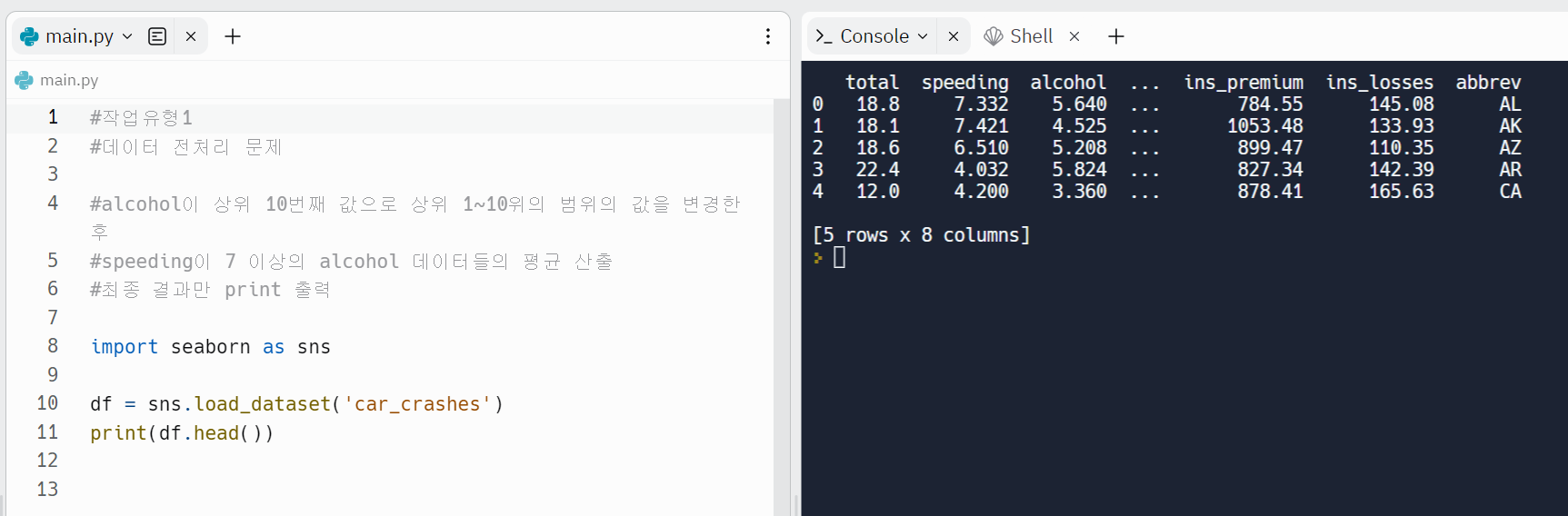 #데이터 전처리 문제