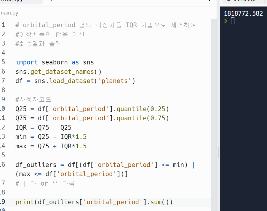 #이상치들의 합을 계산