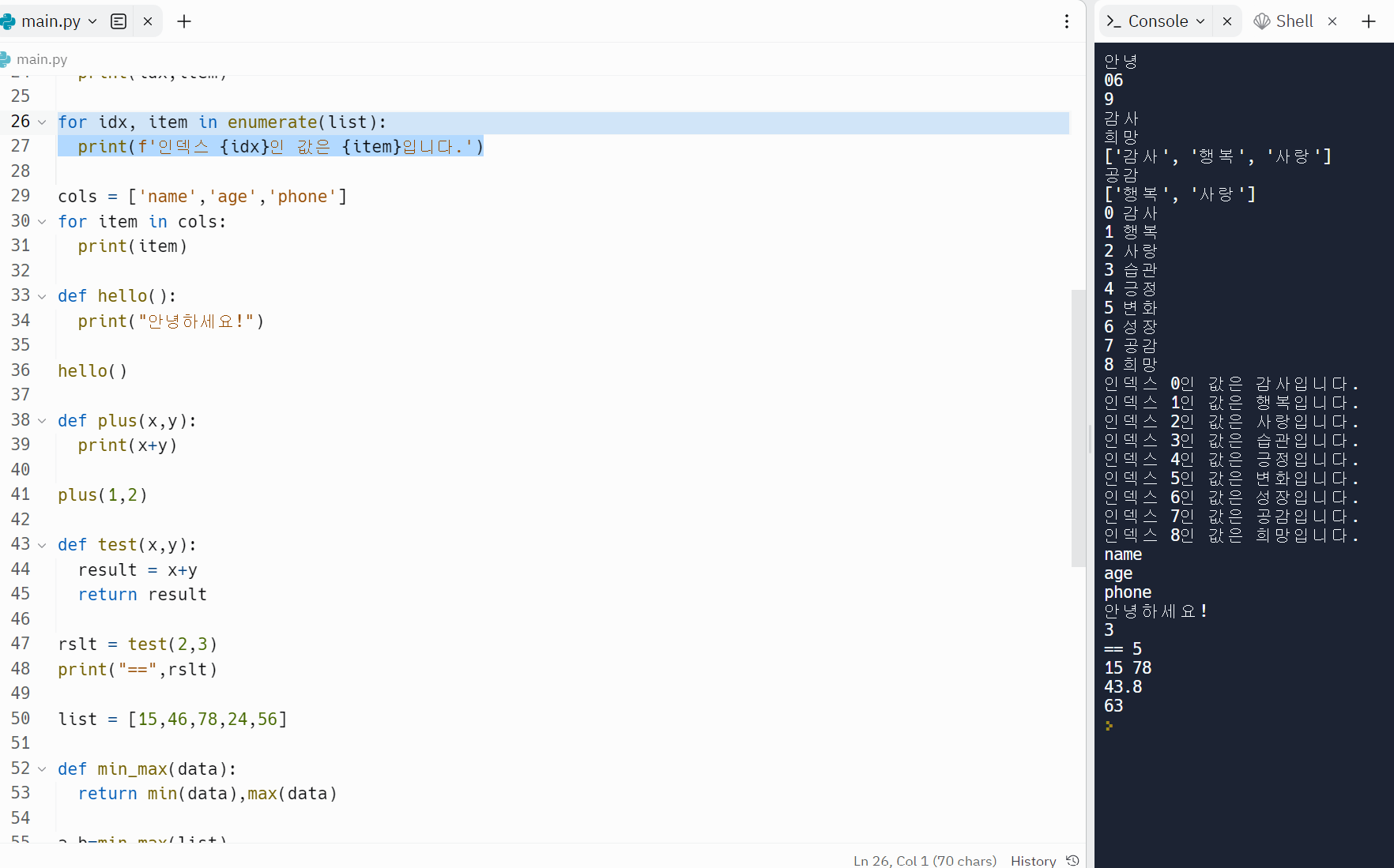# enumerate: index, item 순서로 준다.