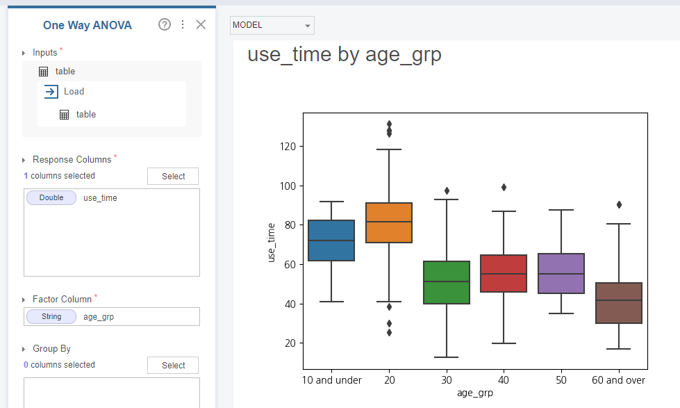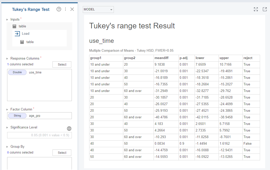 이 테스트는 10대와 20대를 비교하고, 10대와 30대를 비교하는 등, 각 그룹을 다른 그룹과 비교하는 결과를 알려줍니다.